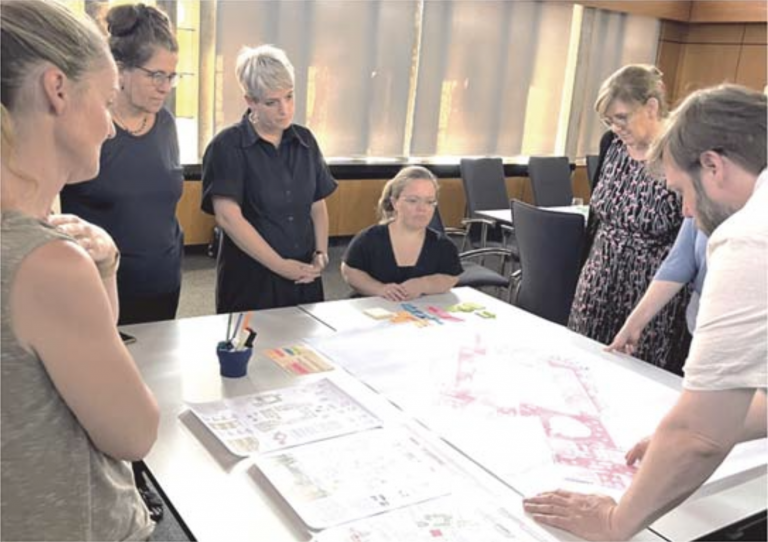 Dann geht die Beratung los: die verfügbaren Räume und Flächen werden erfasst, ebenso wie die bestehenden Teamstrukturen, insbesondere die des Früh- und Spät-Teams. Es wird analysiert, wo und wie der Schulalltag aktuell organisiert ist.
